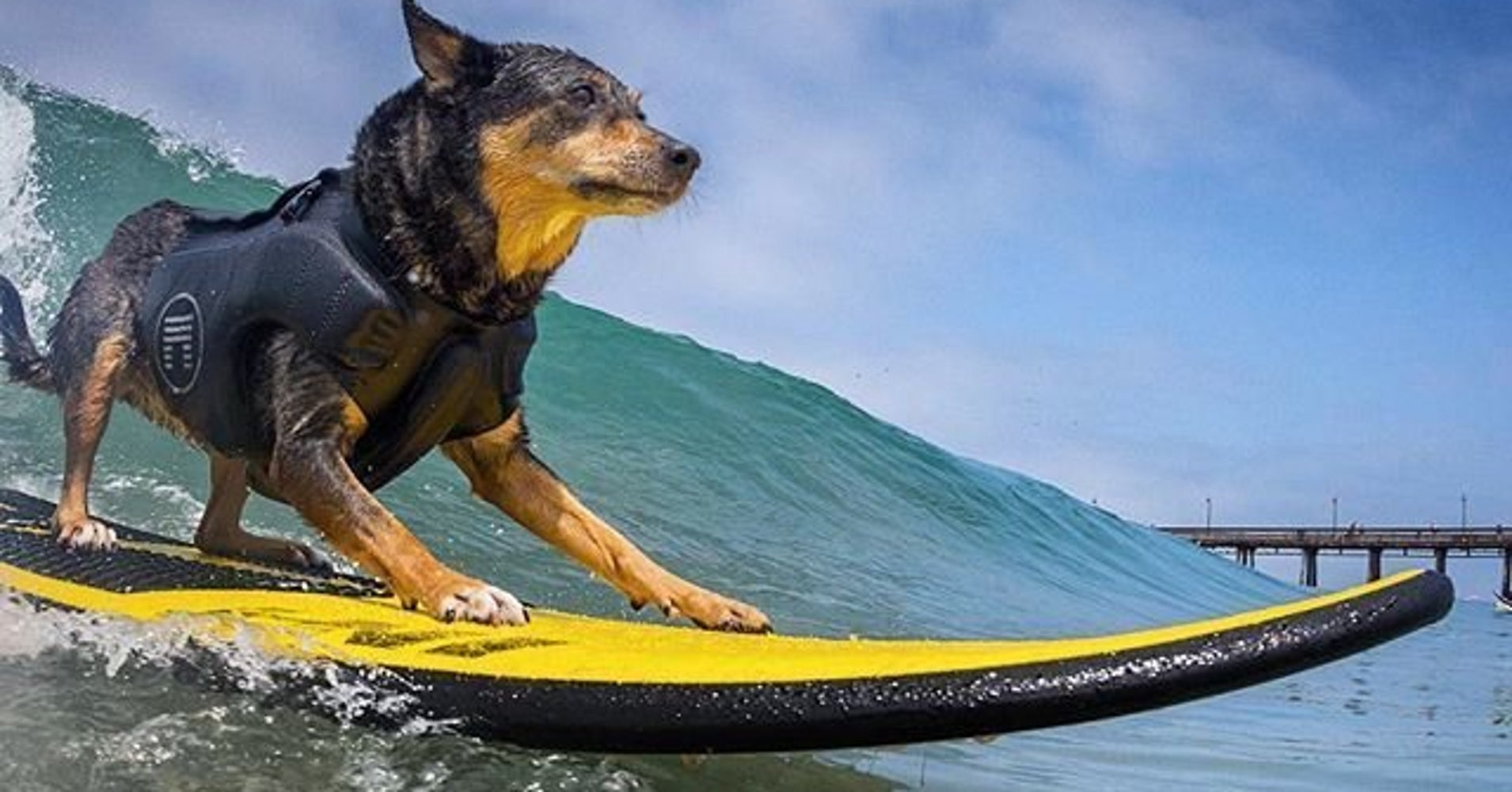 Take Abbie Girl, an Australian Kelpie rescue with a real knack for riding a wave. She won a special Spirit of Surfing Award for her performance and her dedication to the sport — and third place honors in the medium-sized dogs category. Owner Michael Uly got his buddy to the contest even though he had broken his foot.