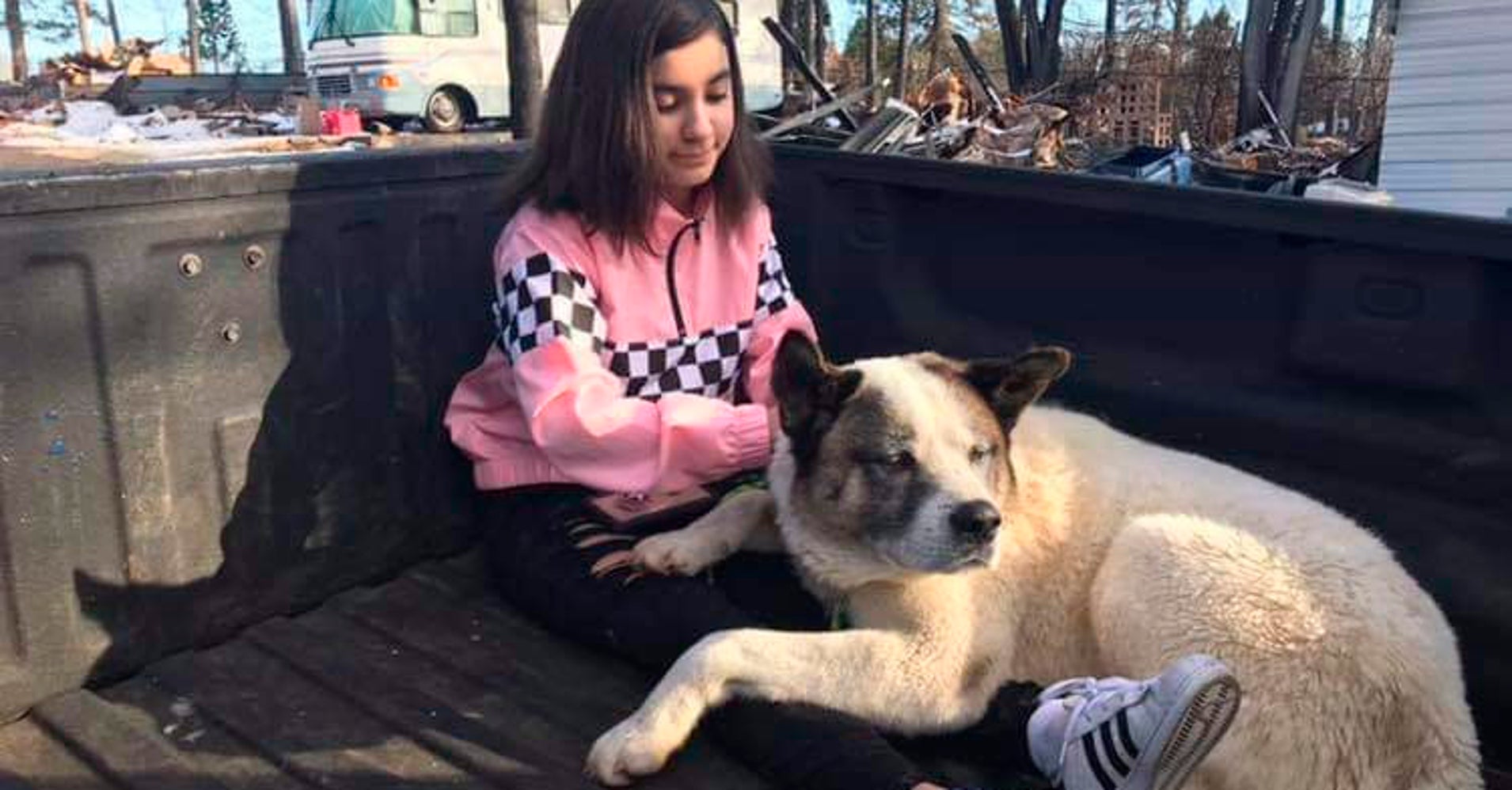 The 12-year-old Akita was reunited Monday with the Ballejos family, who fled the town of Paradise late last year, Sacramento television station KXTV reported.